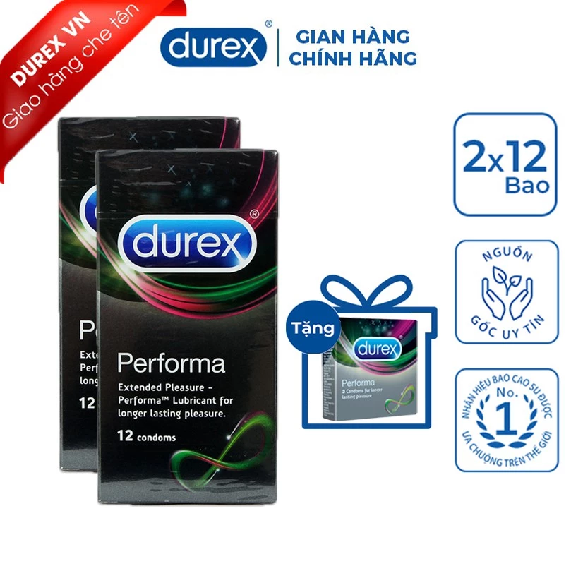 ⚡Che Tên Sản Phẩm⚡ Bộ 2 Hộp Bao cao su Durex Performa 12 bao Tặng 1 Hộp Performa 3 bao (Bao Cao Su Kéo Dài Thời Gian)