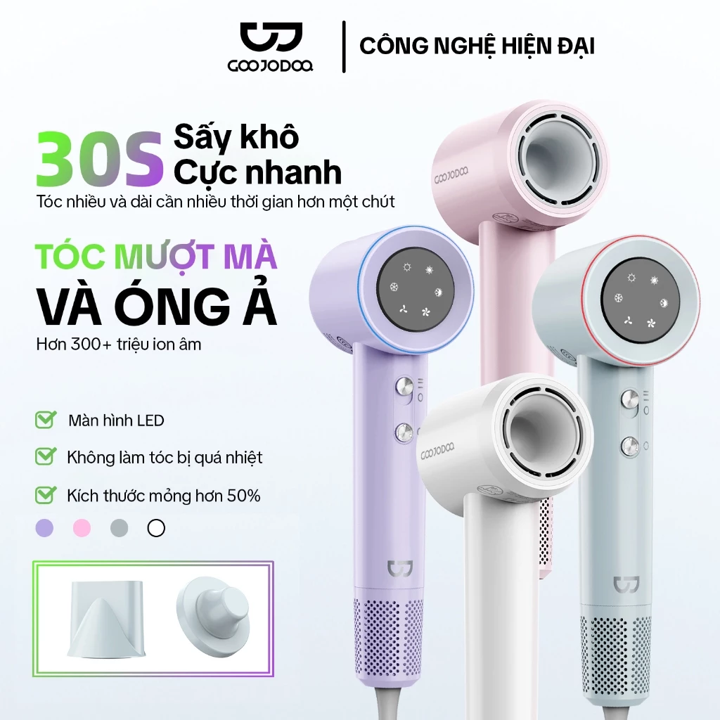 【Bảo hành một năm】GOOJODOQ Máy sấy tóc tốc độ cao có màn hình hiển thị công suất LED 3 tốc độ gió bốn phút để sấy khô Thích hợp cho du lịch và sử dụng tại nhà