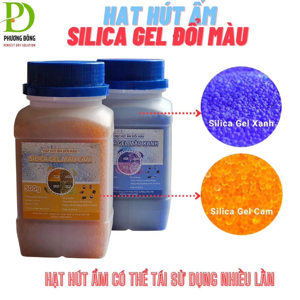 500g hạt hút ẩm Silica Gel đổi màu hút ẩm nhanh, có thể tái sử dụng nhiều lần, hộp kín đẹp chắc chắn hàng mới nhập.