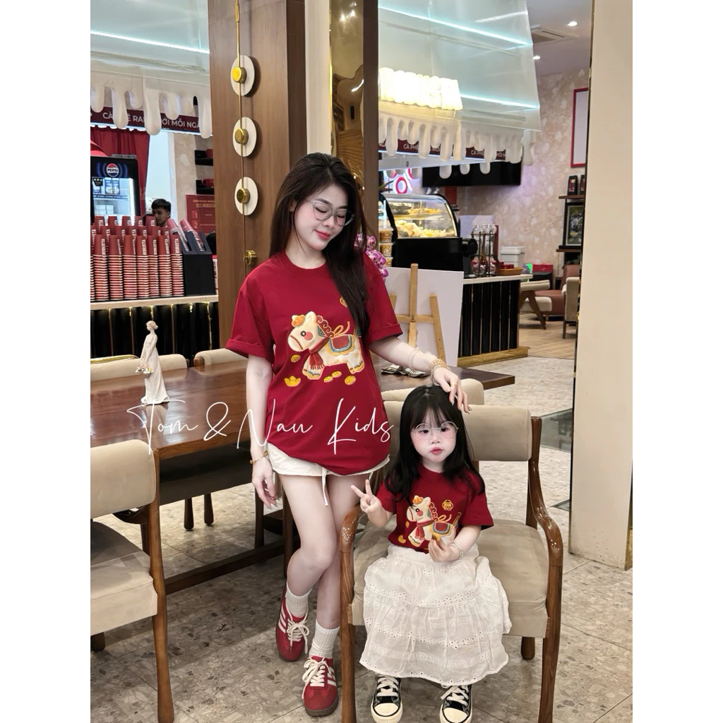 A10-Giá 1 áo Áo thun MẸ&BÉ ĐỎ TẾT NGỰA cho GIa đình – Size 9-80Kg