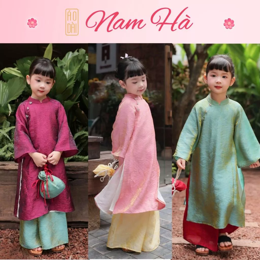 Áo dài bé gái Tân Xuân, chất liệu tơ tằm nhũ cao cấp, form áo đẹp, mềm mại và uyển chuyển