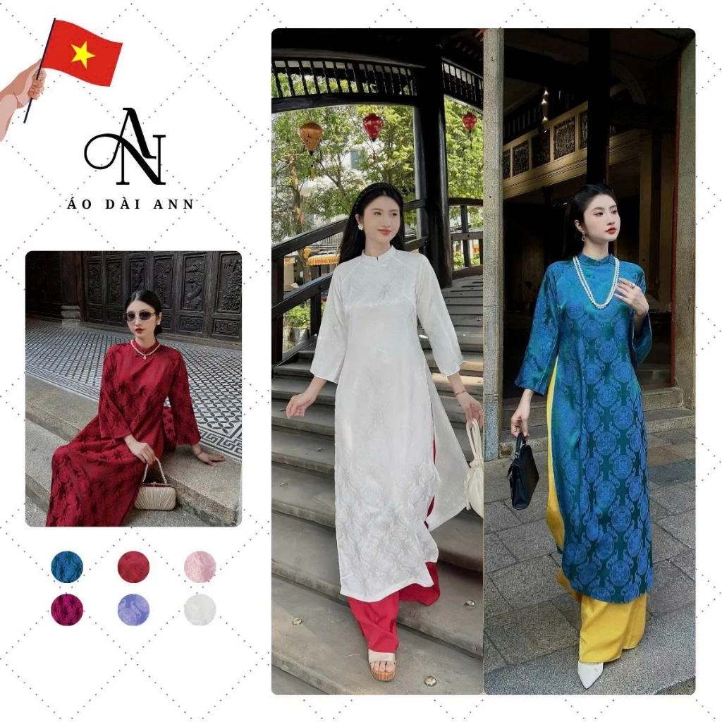 Áo Dài cách tân Gấm họa tiết Thọ Dơi CAO CẤP dáng suông tay lỡ mặc lễ Tết, Áo Dài Tết – Áo Dài ANN