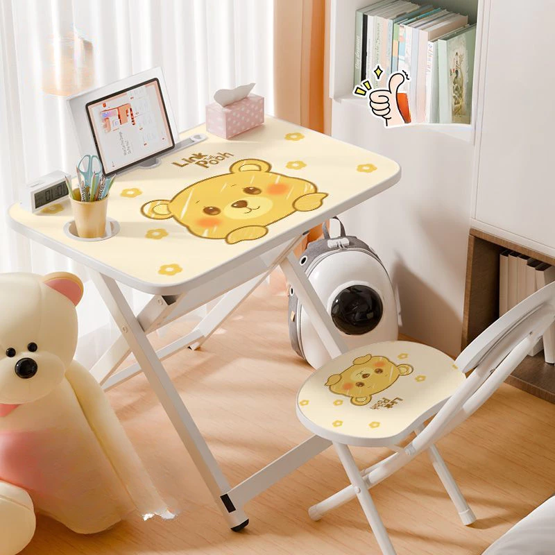 Bàn học trẻ em hình gấu dễ thương, bàn học sinh gấp gọn, đơn giản, không cần lắp ráp, bộ bàn ghế viết cho phòng ngủ – Lợi ích chính