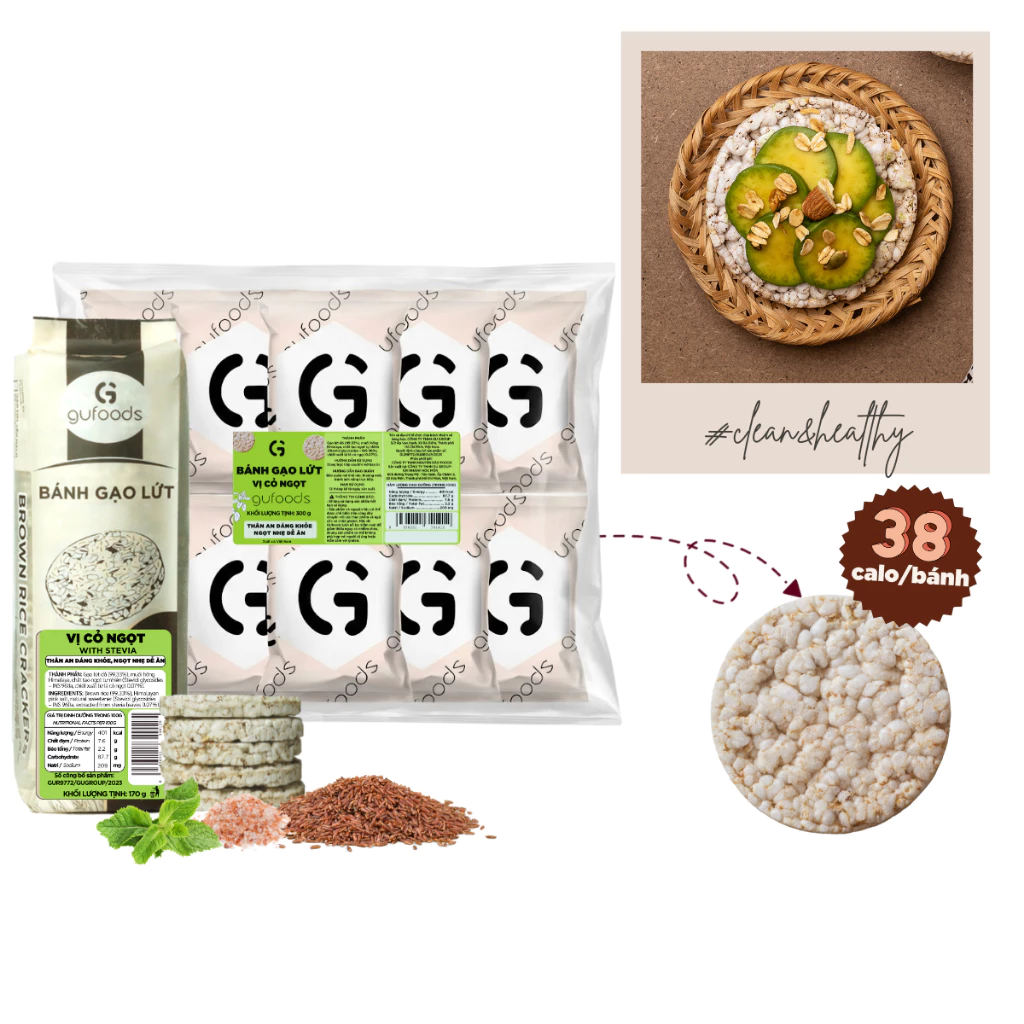 Bánh ăn kiêng gạo lứt GUfoods – Không đường, Thực dưỡng, Tập gym (170g/300g/40g) – Bánh Tết