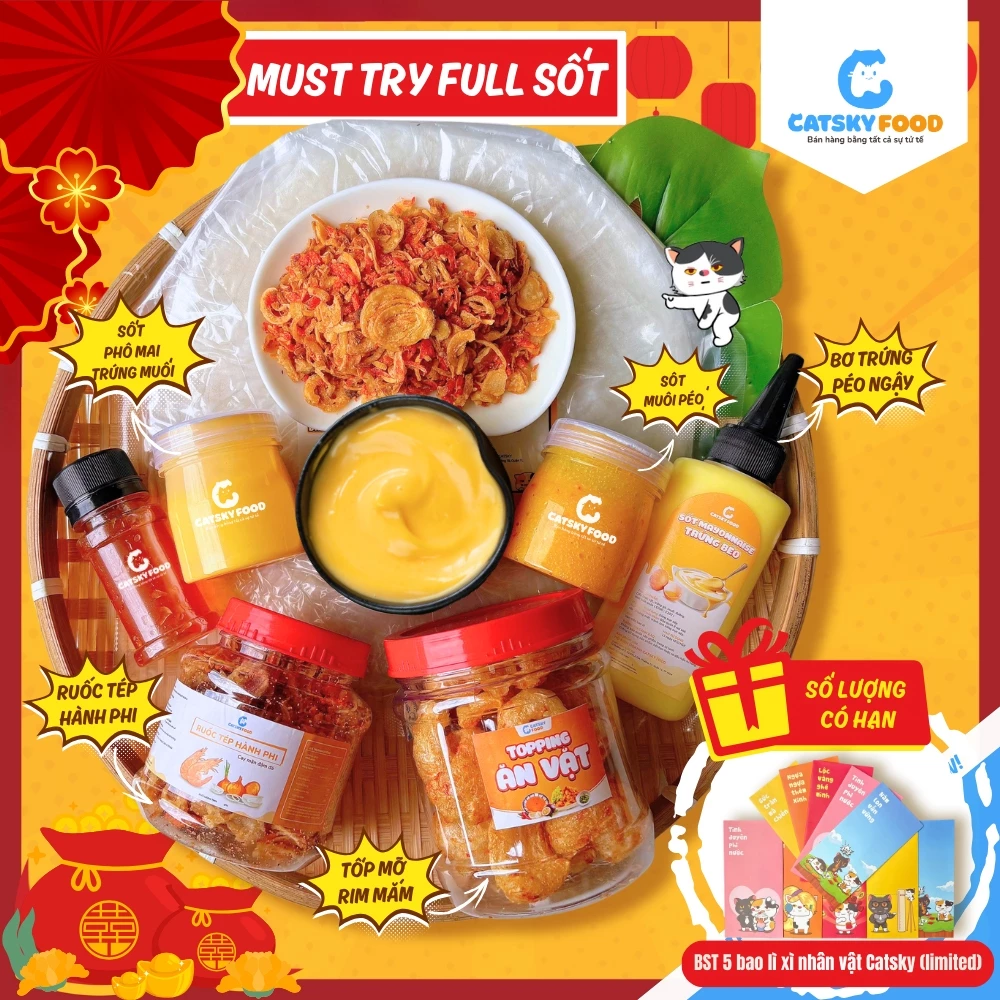 Bánh tráng phơi sương CATSKY FOOD combo bánh tráng sốt muối béo đồ ăn vặt tiện lợi – COMBO MUST TRY