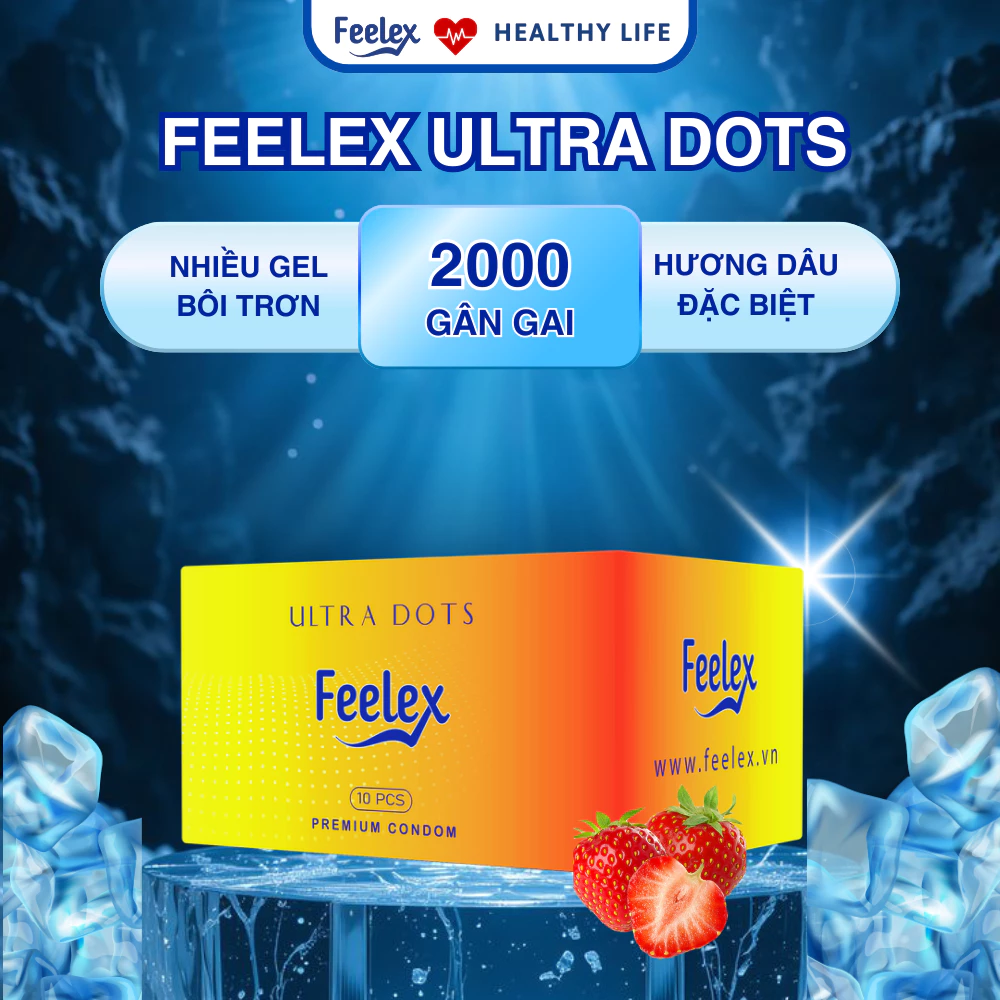 - Tên sản phẩm: Bao cao su Feelex Ultra dots gân gai, nhiều gel bôi trơn