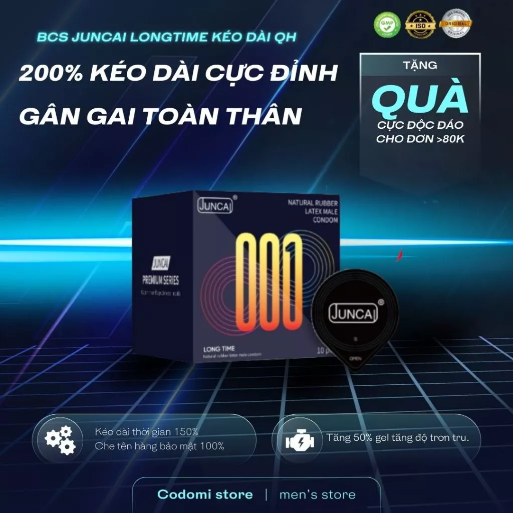 Bao cao su Juncai Long Time kéo dài thời gian quan hệ, siêu mỏng nhiều gel bôi trơn, gân gai cao cấp CODOMI – Lợi ích chính