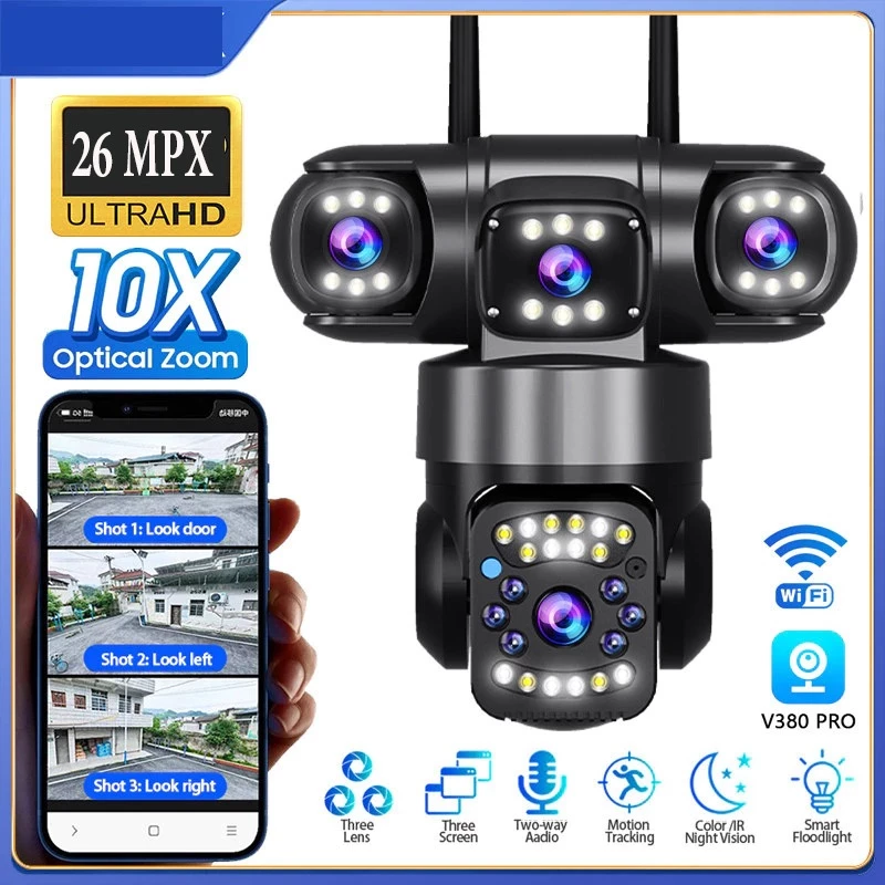 Camera 4 Mắt Wifi Ngoài Trời 360 độ 26MP PTZ ,Đàm Thoại 2 Chiều,Zoom 10X, Theo Dõi Chuyển Động
