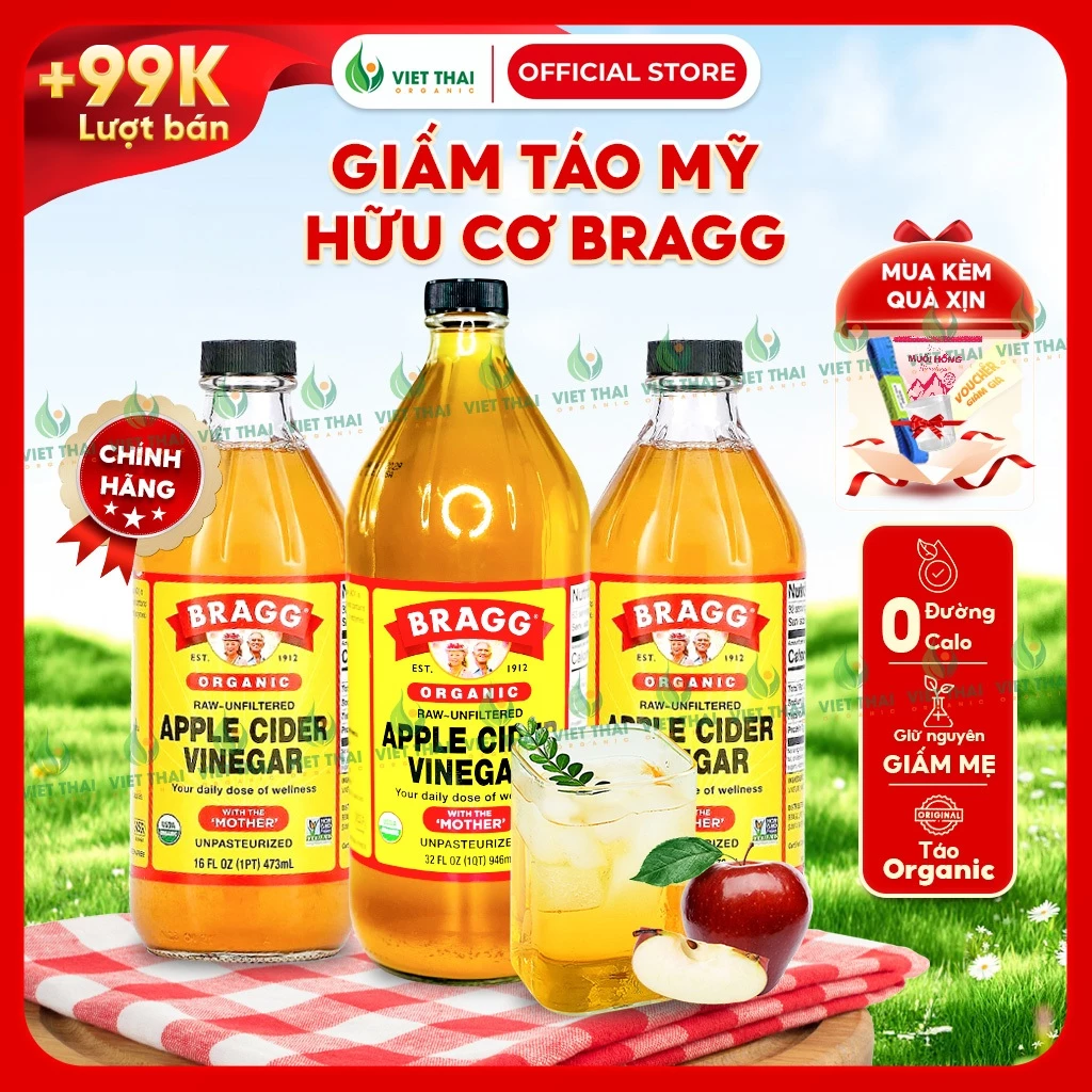 [CHÍNH HÃNG + QUÀ] Giấm Táo Hữu Cơ Mỹ Bragg Có Giấm Cái – Dấm Táo Detox Eatclean Việt Thái Organic
