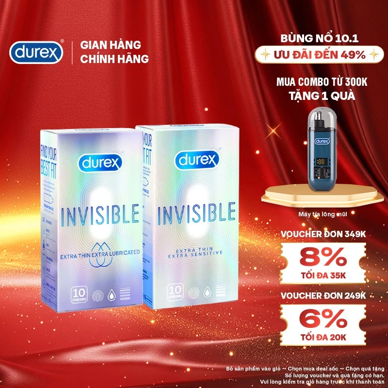 - Tên sản phẩm: COMBO DUREX INVISIBLE LUBRICATED và DUREX INVISIBLE EXTRA THIN EXTRA SENSITIVE