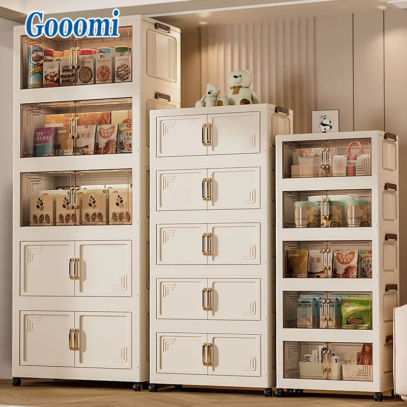 Gooomi trong suốt cao cấp tủ nhựa gấp tủ quần áo hộp đựng đồ tủ bếp tủ đựng đồ
