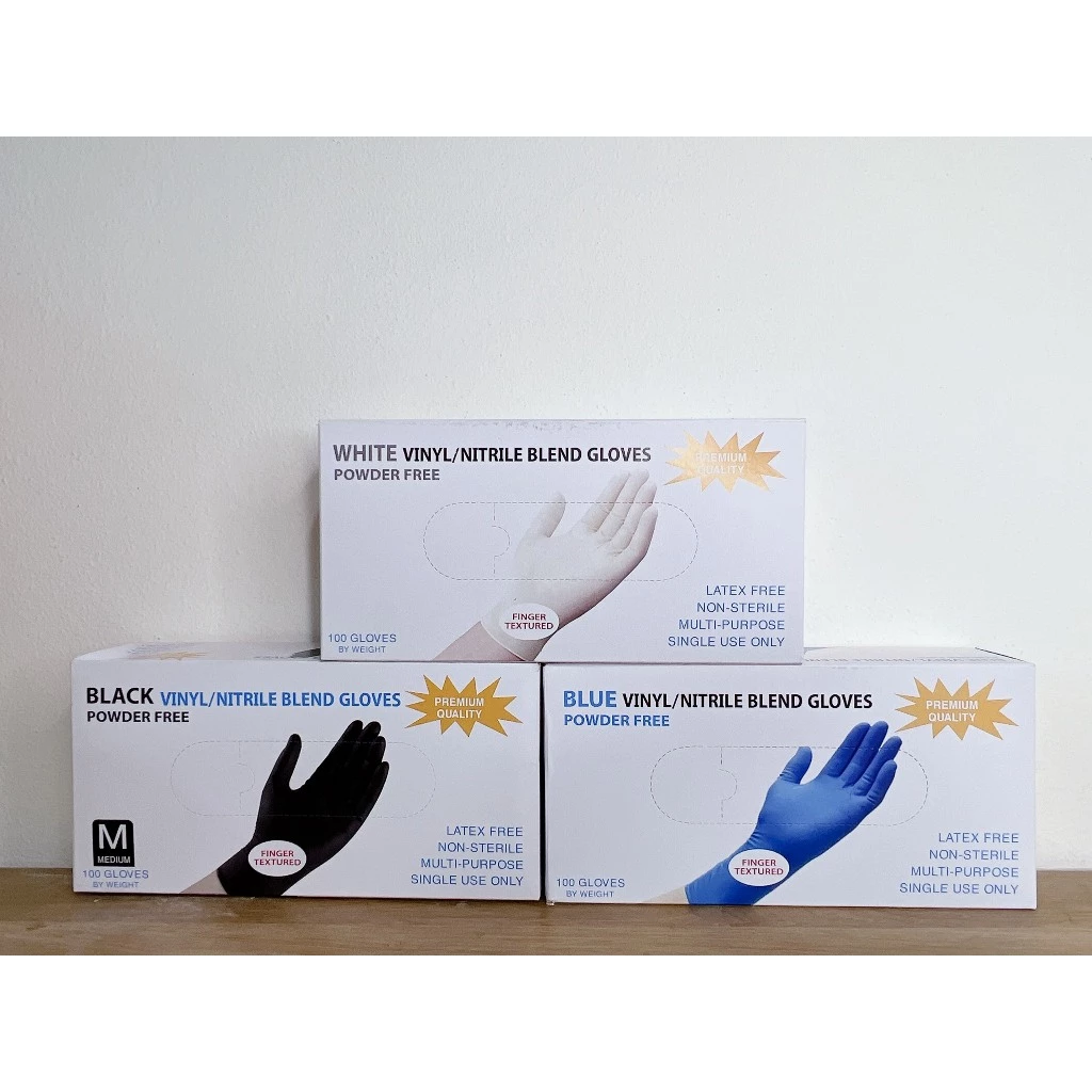 Hộp 100 Chiếc Găng Tay Đen Trắng Cao Su Không Bột Bao Tay Cao Su Không Bột Đen Nhám Làm Tóc Nấu Ăn Spa Phun Xăm Hàng L1