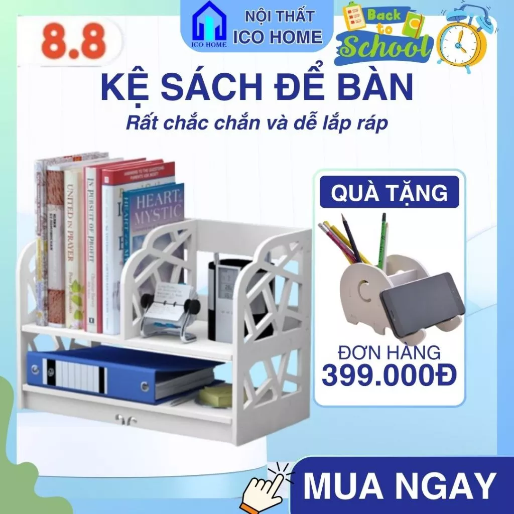 Kệ sách để bàn bằng gỗ đẹp có nhiều ngăn dễ dàng lắp ráp, để bàn học bàn làm việc văn phòng gọn gàng- ICO HOME