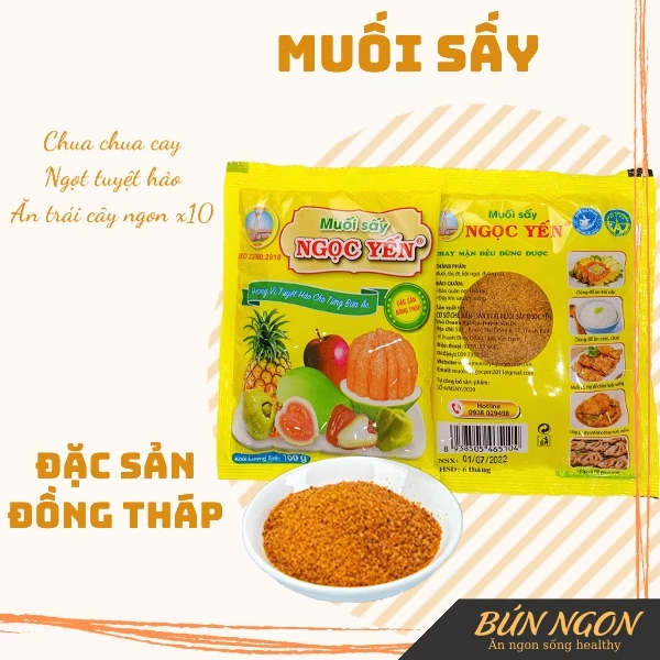 Muối Sấy Ngọc Yến Chấm Hoa Quả – Đặc sản Đồng Tháp Chính Hãng Bao Bì Mới – Bún Ngon