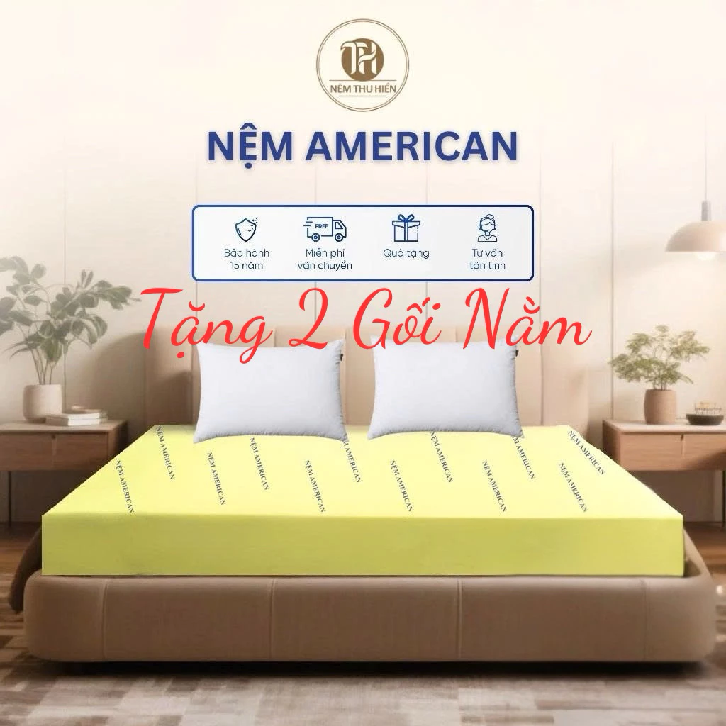 Nệm cao su non American cao 10cm chính hãng , êm ái , đàn hồi tốt , thoáng khí – ( Tặng 2 Gối Nằm )