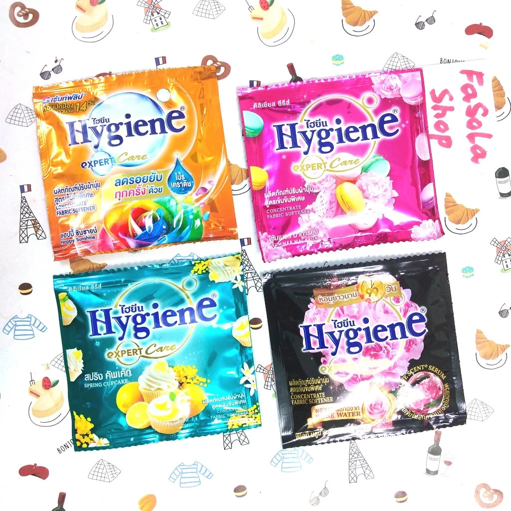 Nước xả vải HYGIENE Thái Lan dây 12 gói 20ml đậm đặc mềm quần áo màu thơm lâu expert softener đen