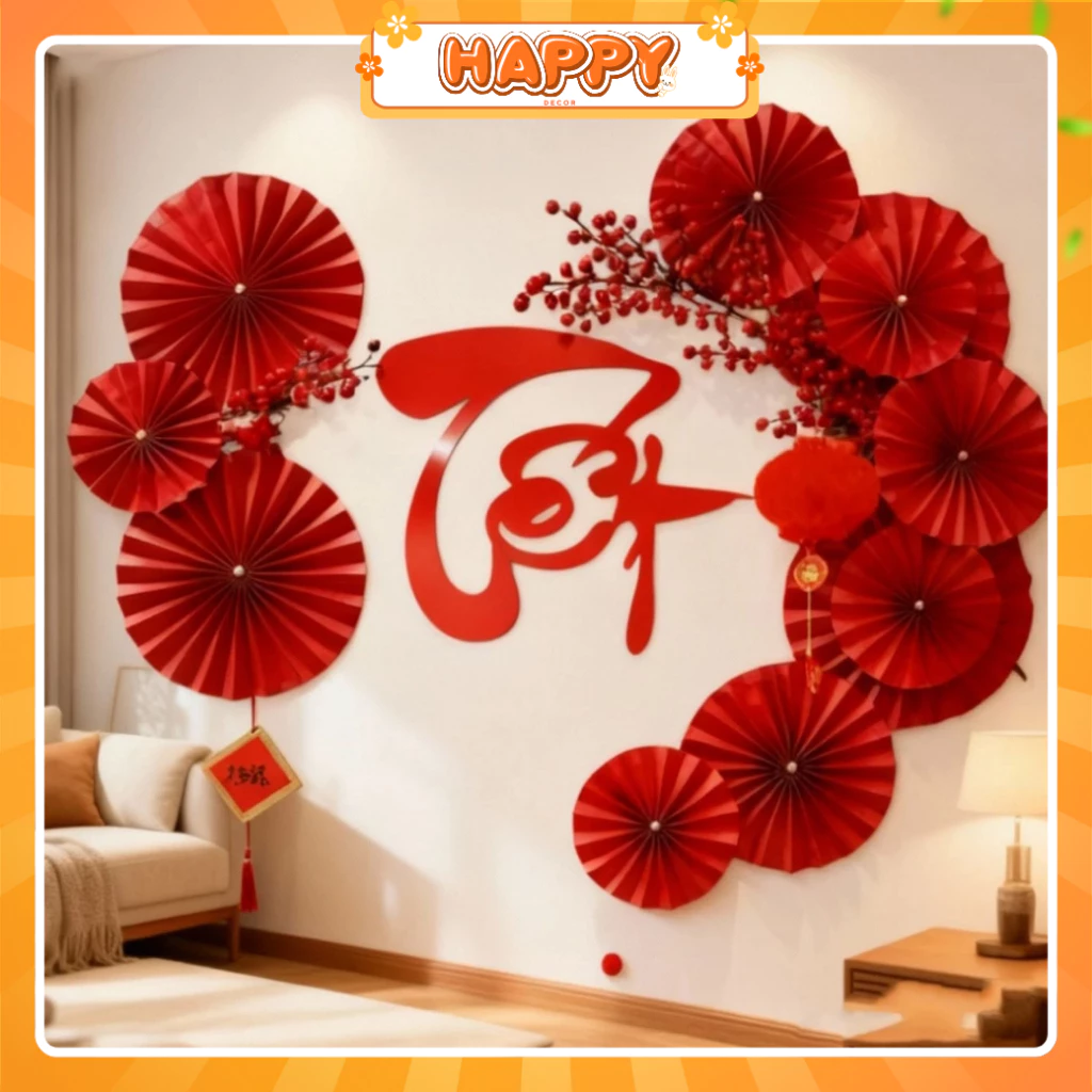 Set Trang Trí Tết Bính Ngọ 2026 Treo Tường Gồm Quạt Giấy, Chữ Tết, Cành Đào Đông May Mắn | HAPPY DECOR – Lợi ích chính