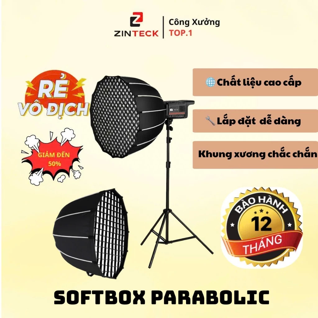 Đừng để ánh sáng yếu kém làm giảm chất lượng nội dung của bạn. Softbox Parabolic Zinteck mang đến giải pháp chiếu sáng đột phá, biến mọi khung hình trở nên chuyên nghiệp và thu hút hơn bao giờ hết. Với khả năng gom sáng hiệu quả và tạo ra ánh sáng mềm mại, tự nhiên, sản phẩm này là trợ thủ đắc lực cho mọi nhà sáng tạo nội dung.