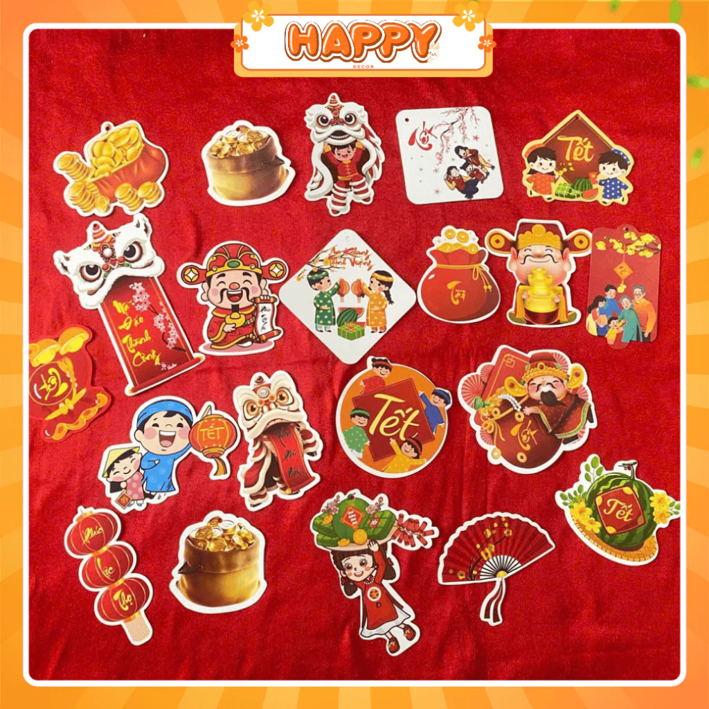 - Thiết kế đa dạng: Bao gồm nhiều mẫu mã, họa tiết Tết truyền thống và hiện đại, phù hợp với nhiều phong cách trang trí.