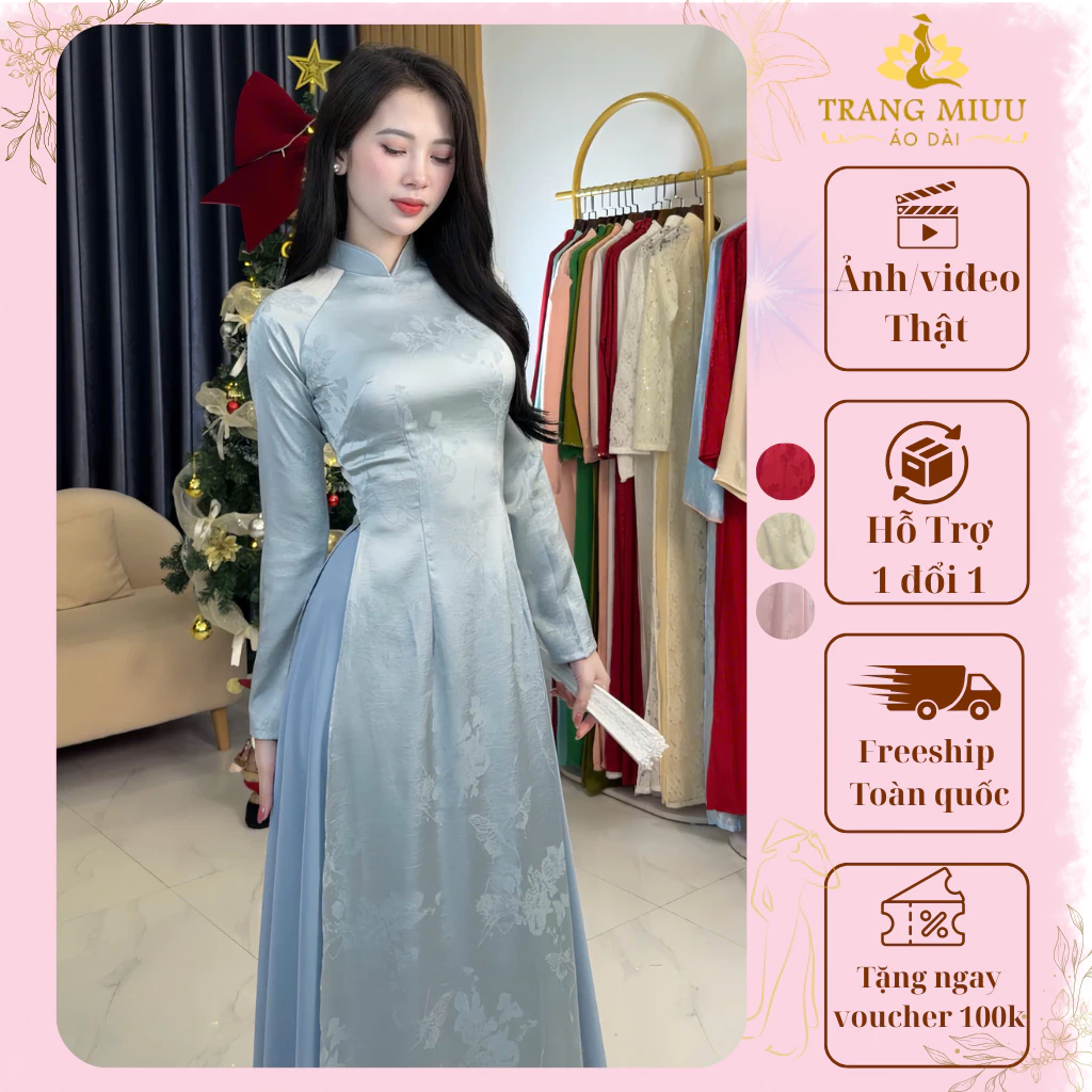 Khám phá vẻ đẹp vượt thời gian với [Thiên điệp] Áo dài truyền thống lụa châu giang mềm mịn co dãn cao cấp – Áo Dài Trang Miuu.