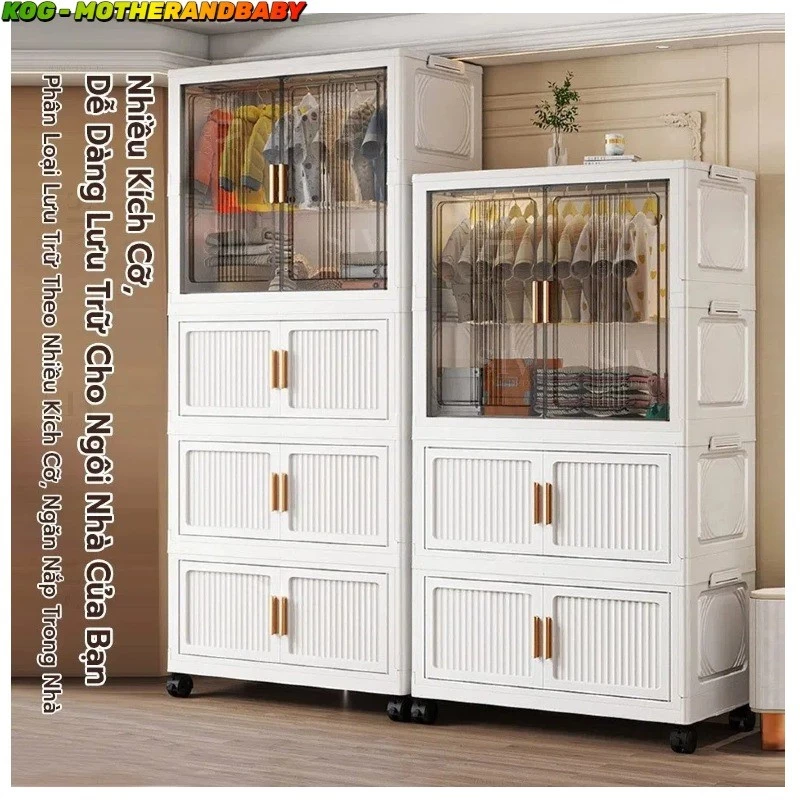 Tủ Nhựa Đa Năng Cho Bé – Có Ngăn Treo & Bánh Xe, Thiết Kế Nhiều Tầng, Tủ Quần Áo Trẻ Em Tiện Lợi