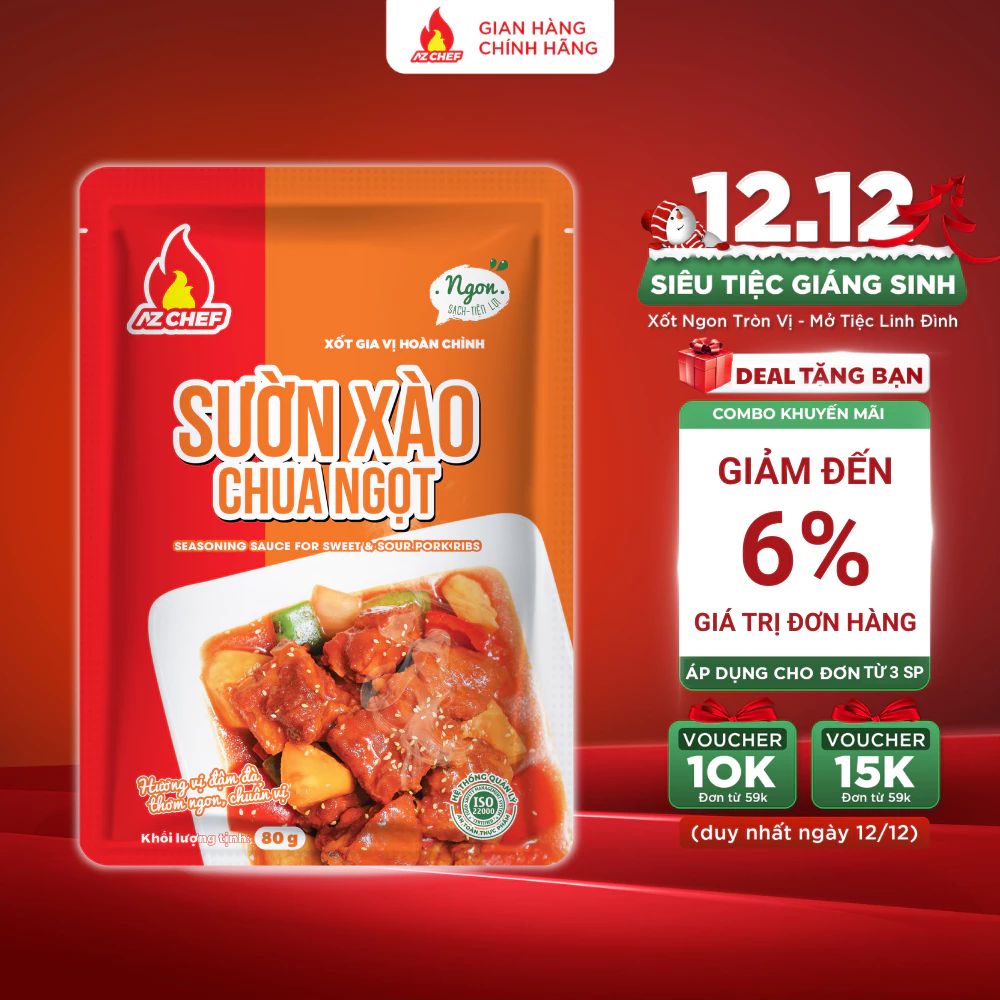 Xốt sườn xào chua ngọt AZ CHEF nước xốt nấu ăn ngon chuẩn vị chua ngọt dùng cho 500g sườn gói 80g